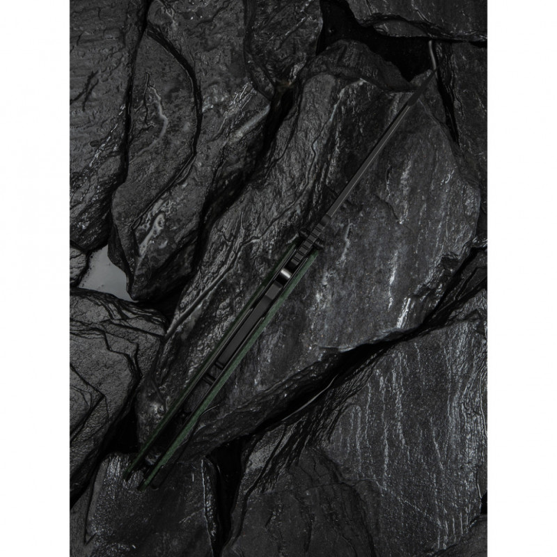 - Клинок з преміальної сталі Nitro-V. Сплав твердістю 58-60 HRC поєднує стійкість до корозії, високу міцність та тривале утримання заточування. Матовий фініш black stonewashed приховує сліди пальців та усуває відблиски.