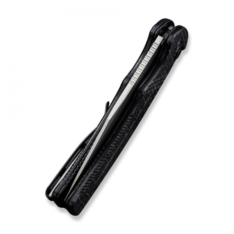 Довжина складаного інструменту у відкритому положенні становить 200.1 мм, 88.2 мм припадає на клинок зі шведської сталі 14C28N компанії Sandvik. До переваг цієї марки відноситься висока опірність зношуванню та появі корозії, а також тривале утримання гостроти різальної крайки. На фінішному етапі клинок піддався піскоструминній обробці, що зробило поверхню матовою.