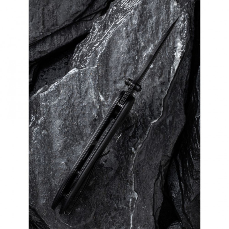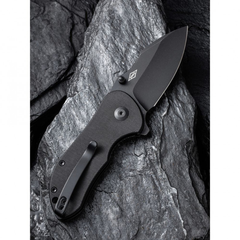 Ніж має вкорочений клинок завдовжки 63.8 мм, що дозволяє максимально контролювати інструмент під час використання. Клинок з профілем drop point має незвичайну виїмку в області 3-міліметрового обуха, злегка піднімаючи упор для великого пальця та полегшуючи виконання силових завдань.