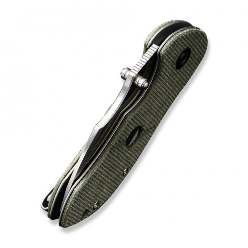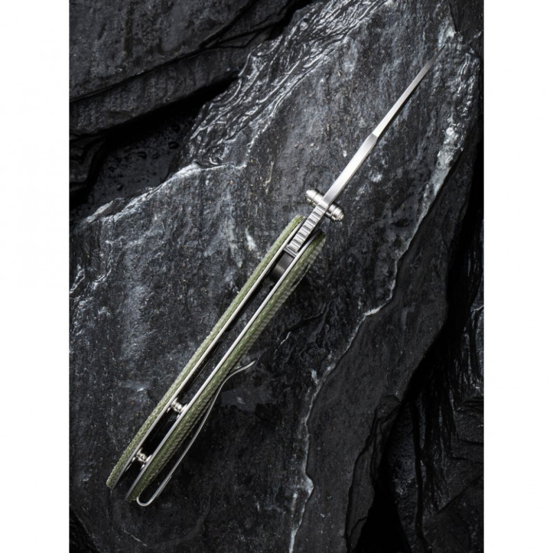 Ніж має вкорочений клинок завдовжки 63.8 мм, що дозволяє максимально контролювати інструмент під час використання. Клинок з профілем drop point має незвичайну виїмку в області 3-міліметрового обуха, злегка піднімаючи упор для великого пальця та полегшуючи виконання силових завдань.