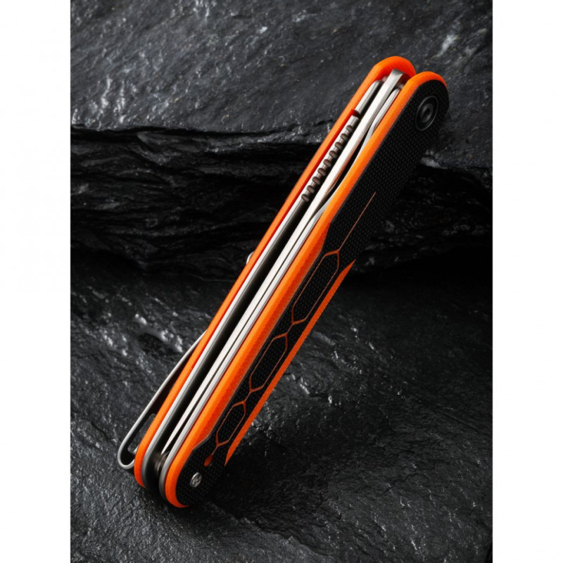 Civivi KwaiQ — це ніж-фліпер, який відкривається натисканням на плавець. Підшипники з кераміки в осьовому вузлі забезпечують миттєве відкриття, а замок liner lock намертво фіксує клинок, що дозволяє виконувати ним будь-які маніпуляції ефективно та безпечно.