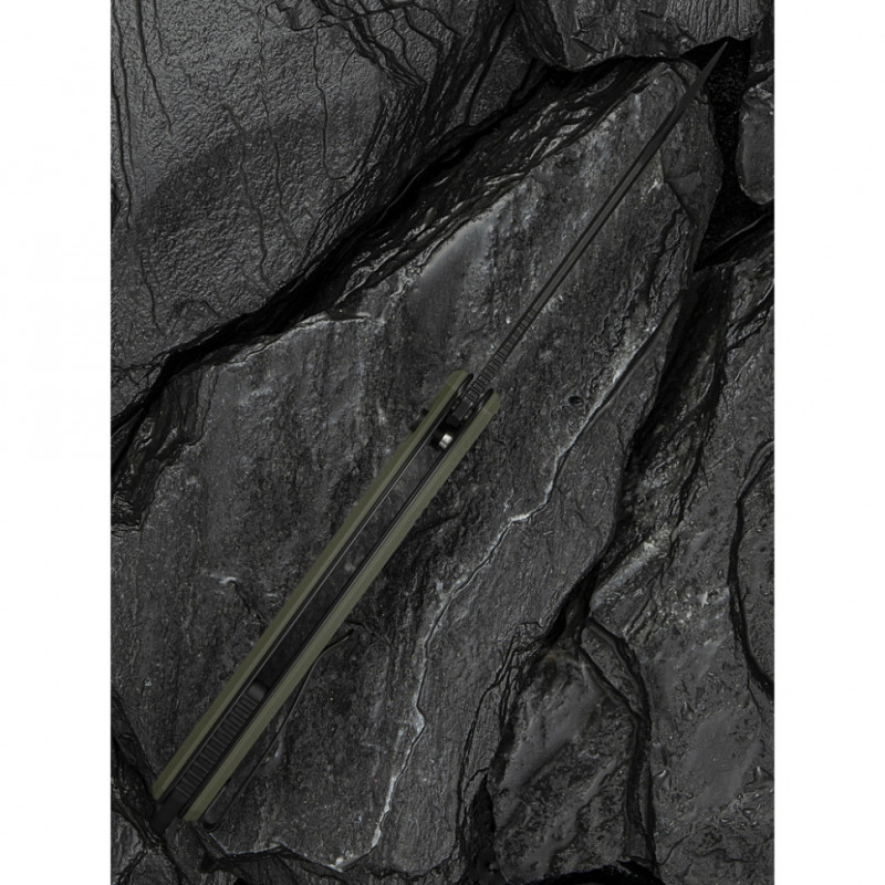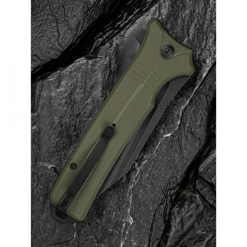 - Преміальна сталь Nitro-V у клинку. Мартенситна сталь випускається компанією New Jersey Steel Baron (NJSB), яка взяла за основу сталь AEB-L та доповнила її склад азотом та ванадієм. Це рішення підвищило зносостійкість різальної кромки та наділило метал надзвичайними антикорозійними властивостями, завдяки чому марка широко застосовується зокрема у створенні ножів для дайвінгу. Твердість Nitro-V сягає 58-60 HRC, успішно балансуючи між міцністю та легкістю в обслуговуванні.