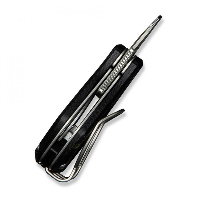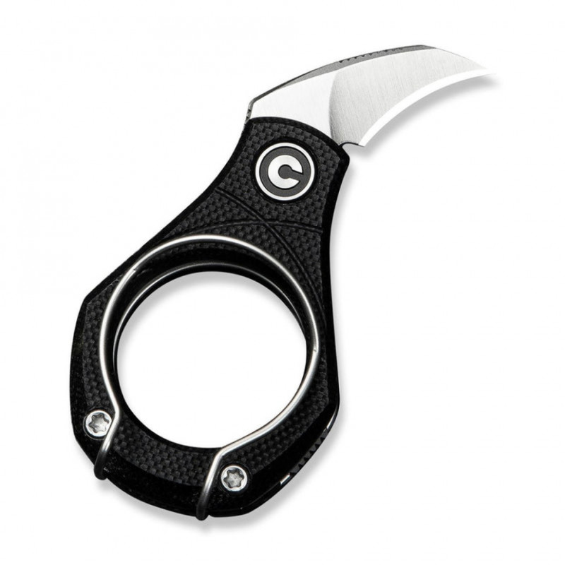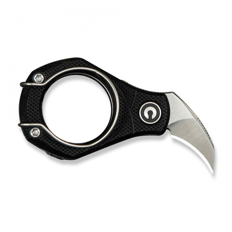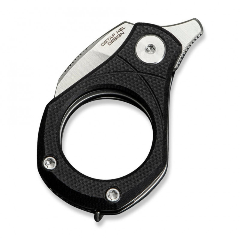 Попри мініатюрні розміри (лише 57,4 мм у закритому положенні), модель не позбавлена ергономіки, за яку відповідають шорсткі накладки з G10 на руківʼї. У конструкції також є кліпса на кишеню, яку можна використовувати як затискач для грошових купюр або кільце для носіння ножа як брелок.