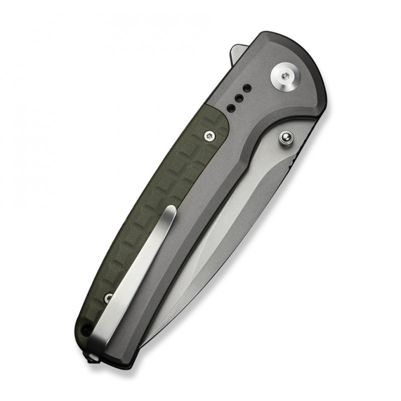 - Алюмінієве руківʼя зі вставками FRN. Алюміній знижує загальну вагу ножа до 104.7 г і відрізняється несприйнятливістю до окиснення та зношування. Вставки з нековзного термопластика FRN додають хвату надійності, особливо під час утримання вологою долонею або рукою в рукавичці.
