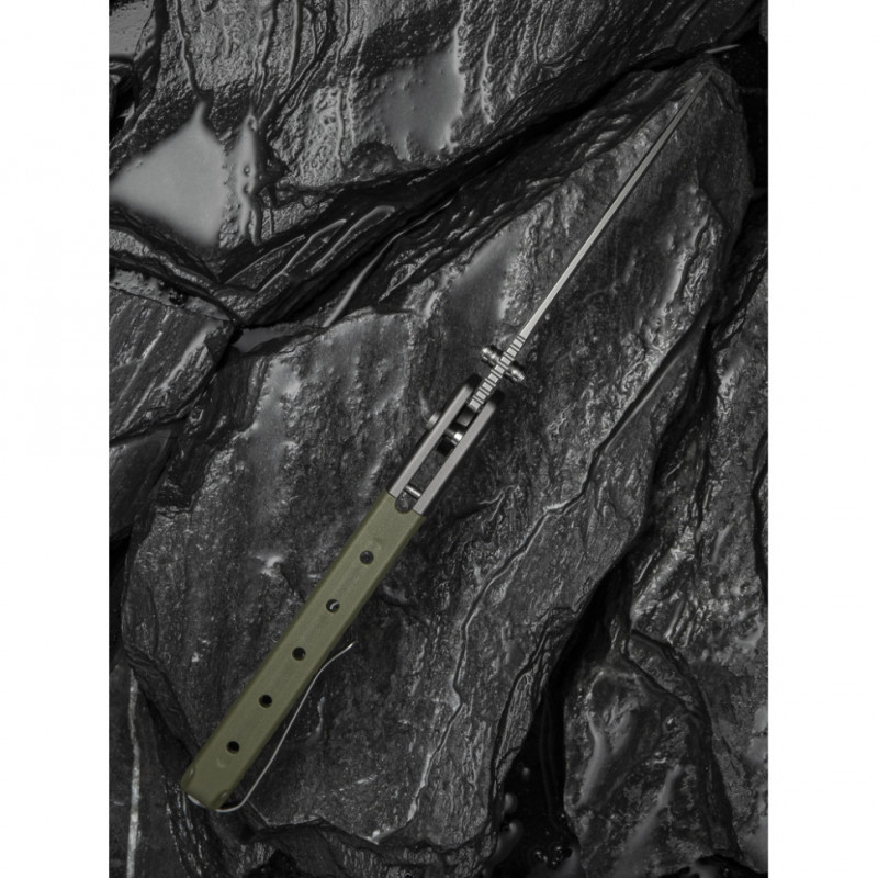 - Нержавіюча сталь Nitro-V у клинку. Сталь демонструє відмінну стійкість до корозії, а додавання азоту підвищує міцність та сприяє тривалому збереженню гостроти леза, зокрема завдяки еталонній твердості металу в межах 58-60 HRC. Nitro-V також може похвалитися високою ударною в'язкістю, що мінімізує ймовірність сколів та тріщин.