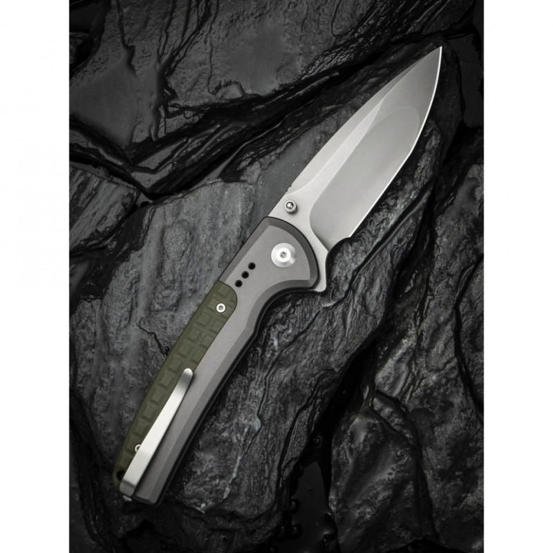 В основі осьового вузла знаходяться підшипники з міцної кераміки, які роблять відкривання конструкції миттєвим. Щоб дістати клинок з руківʼя, можна використовувати плавець фліпера або шпеник. При відкритті ніж фіксується замком Button Lock з пружною кнопкою — її легке натискання вивільняє лезо та дозволяє швидко закрити інструмент однією рукою.