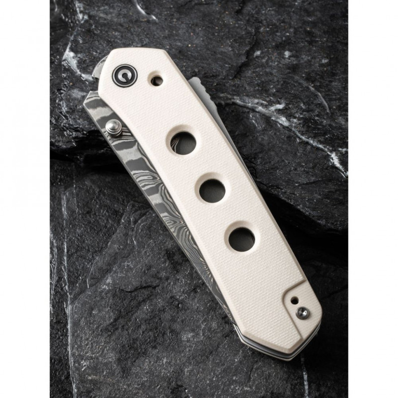 Руківʼя моделі доповнюють накладки зі склопластику G10. Вони мають шорстку поверхню, що покращує утримання конструкції під час експлуатації. Ряд отворів у накладках знижують загальну вагу ножа до 123.4 г, що з урахуванням наявності кишенькового затискача з нержавіючої сталі дозволяє носити інструмент з собою на постійній основі.