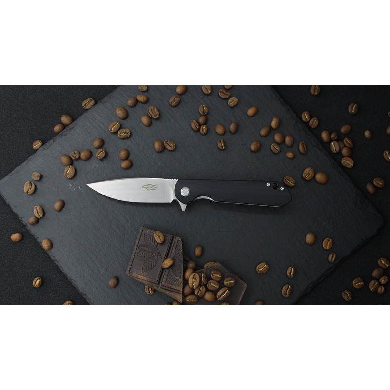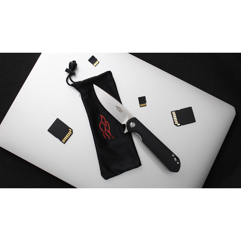 Лезо Firebird FH41S-BK виготовлено з інструментальної сталі D2. Даний сплав-гарант ефективності і довгого терміну служби виробу, завдяки збалансованому складу. Вміст хрому в сталі коливається в межах 11-13%, що робить матеріал стійким до появи корозійних плям при попаданні на клинок води або впливі агресивних середовищ. Головна перевага даної сталі-тривале утримання заточування навіть при інтенсивних навантаженнях, включаючи роботу з такими щільними матеріалами, як деревина. При цьому клинок не деформується і не вимагає багато часу і сил для заточування — для цього підійде звичайний точильний камінь. Для відкриття ножа досить натиснути пальцем на сталевий плавник, після чого клинок намертво фіксується для подальшого безпечного використання.