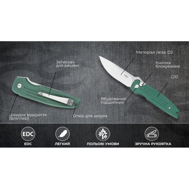 Опис ножа складаного Firebird FH926-GB синьо-зеленого: