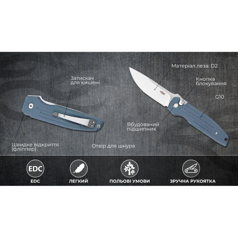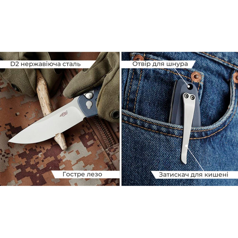 З урахуванням ваги, що дорівнює 116 г, ніж Firebird FH926 зберігає головну перевагу складаних інструментів — зручність у транспортуванні. Ви можете носити модель у місті, брати її на риболовлю, полювання чи в подорож. Достатньо закріпити конструкцію на кишені за допомогою тугої кліпси.