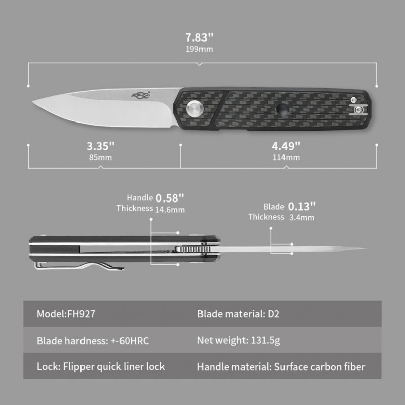 Опис складаного ножа Firebird FH927-CF чорний карбон: