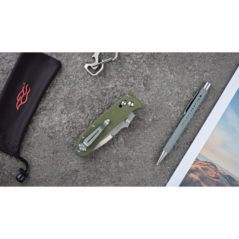 Ganzo 704-дуже вдала модель туристичного ножа від компанії Ganzo, запропонована в двох кольорах рукояті. Функціональний клинок класичної форми drop-point з прямим заточуванням виконаний з висококласної сталі D2 60 HRC і фіксується механізмом Axis Lock. Туристичний складаний ніж Ganzo 704 не тільки привабливо виглядає, але і прекрасно збалансований. У робочому стані розмір ножа — 20 см, а на лезо відведено 8.5 см.обрана Довжина рукояті і текстурування зовнішніх панелей є оптимальними рішеннями для зручного хвата і комфортної роботи. На обуху є насічки, що забезпечують надійне зчеплення робочого пальця з обухом при сильному тиску на інструмент. Матеріал рукояті-композитний текстоліт G10-наділений високими показниками міцності і зносостійкості. В цілому, Ganzo 704 дуже зручний і мобільний, - його розмір в зібраному стані всього лише 11.5 см, а вага — 134 г.в управлінні ніж теж вельми ергономічний і безпечний, завдяки надійному і міцному фіксатору Axis Lock модель легко відкривається і закривається однією рукою. Загартована сталь клинка Ganzo 704 не схильна до корозії, а так само володіє вкрай вдалим співвідношенням міцності і пластичності для того, щоб тримати заточку протягом тривалої експлуатації і не піддаватися руйнуванню від навантажень. Таке лезо буде служити вам довго і якісно, а також не зажадає особливих прийомів заточування. Кишеньковий складаний ніж Ganzo 704-модель вельми приваблива для будь-якої активної людини або колекціонера. Виріб відмінно проявить себе в поході, на природі, На пляжі, кемпінгу або в дорозі, а скромні габаритні розміри легко дозволяють використовувати ніж в якості повсякденного портативного інструменту.