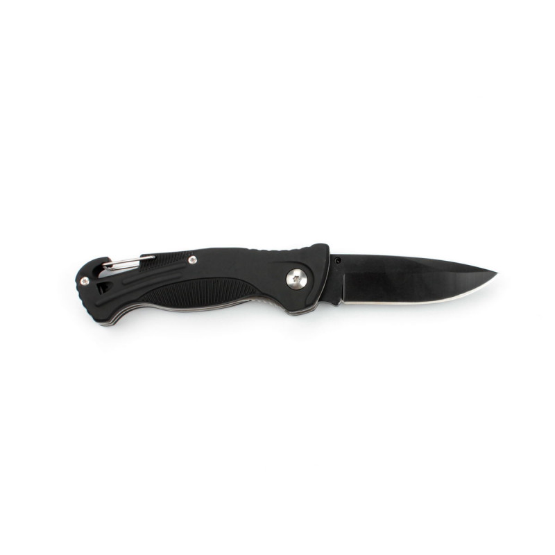 Рукоять ножа G611 black має зручну ергономічну форму і виконана з ударостійкого пластику чорного кольору. Відмінною рисою моделі G611 black є наявність вбудованого в ручку свистка, який дозволяє подати попереджувальний сигнал у разі виникнення непередбаченої ситуації або небезпеки. Також на рукояті розташований карабін, який дозволяє закріпити ніж G611 black на поясі або туристичному спорядженні. Замок Liner Lock надійно фіксує лезо (як у відкритому, так і в закритому положенні). Дана модель стане вашим незамінним помічником під час відпочинку на природі та в походах.