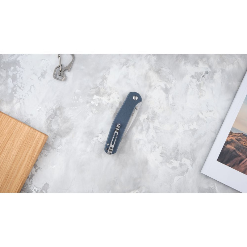 Рукоять моделі виготовлена із застосуванням склотекстоліти G10. Високоміцний матеріал гарантує зручність при використанні ножа і його стійкість до різного роду зовнішніх впливів. Рукоять ергономічної форми, зручна при захопленні. Поверхня рукоятки текстурована, завдяки чому надійно утримується в руці при будь-яких умовах. Металева кліпса дозволяє фіксувати виріб і носити його на кишені, на поясі або прикріплювати до сумки. Передбачено отвір для темляка.