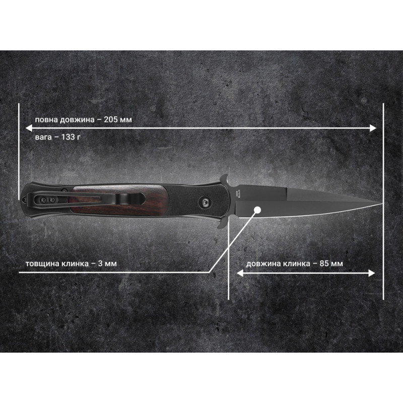 - матеріал руківʼя – нержавіюча сталь зі вставками з натуральної деревини;