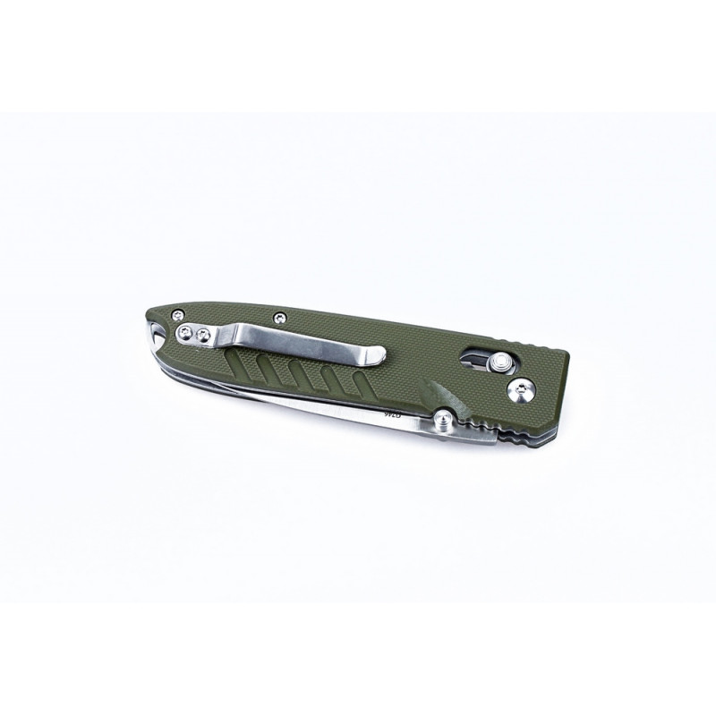 Для рукоятки виготовлені дві накладки з G10. Це сучасний різновид пластику, отримана в результаті з'єднання скловолокна і епоксидних смол. Матеріал дуже міцний і стійкий до більшості негативних факторів. До того ж, склопластик не складно пофарбувати. Тому покупці можуть вибирати між ножами з чорною, зеленої та помаранчевої ручкою. В кожному разі, до рукоятки обов'язково прикручена кліпса, щоб фіксувати ніж у кишені або на ремені.