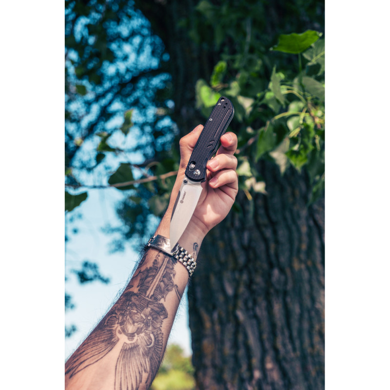 У ножі Ganzo G771 поєднуються універсальність EDC-моделі та стриманий стиль, характерний для інструментів бренду. Завдяки класичному клинку Drop Point ніж покриває всі базові потреби з різання — від побутових завдань, як розкриття паковань, до підготовки гілок для розпалювання багаття на природі.