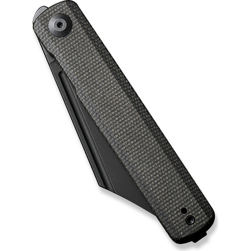 Ручка виготовлена з Micarta. Це композитний матеріал, виготовлений із льону та синтетичної смоли, який забезпечує хороше зчеплення, ніж гарно лежить у руці. Micarta вбирає в себе жири при регулярному використанні, тому кожен ніж з часом стане справді унікальним. Матеріал характеризується високою міцністю, має гарний вигляд і дуже комфортний для руки. Покриття ручки темно-зеленого кольору, тому на ньому не видно маленькі подряпини, він гарно маскує сліди щоденного використання.