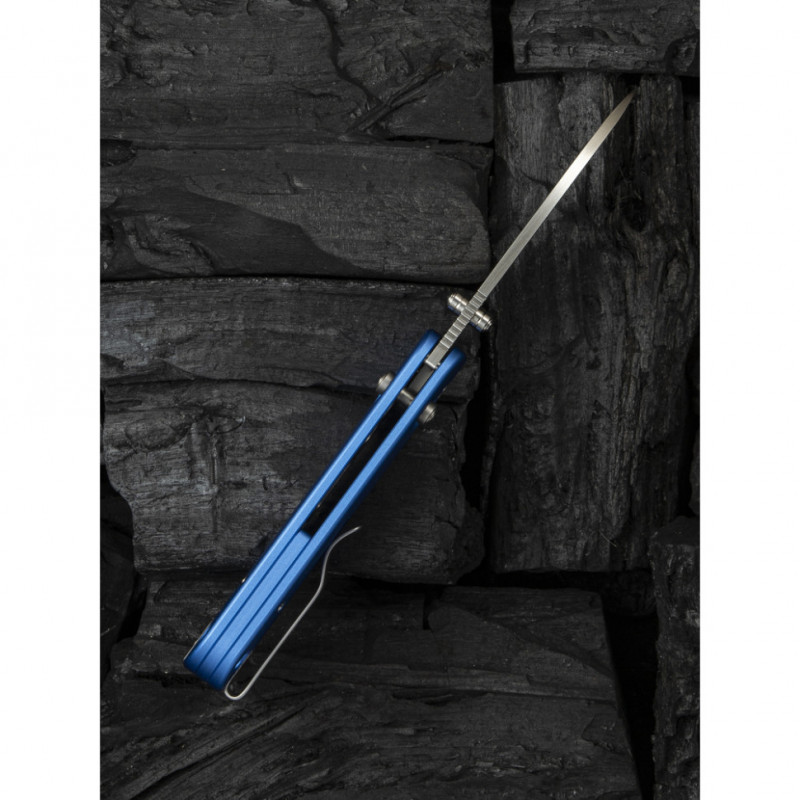 Клинок відкривається за допомогою двостороннього титанового шпеника одним легким натисканням пальцем. Керамічні підшипники роблять рух леза плавним і швидким, дозволяючи відкрити ніж за одну мить.