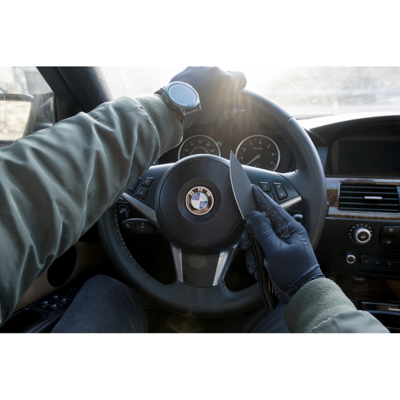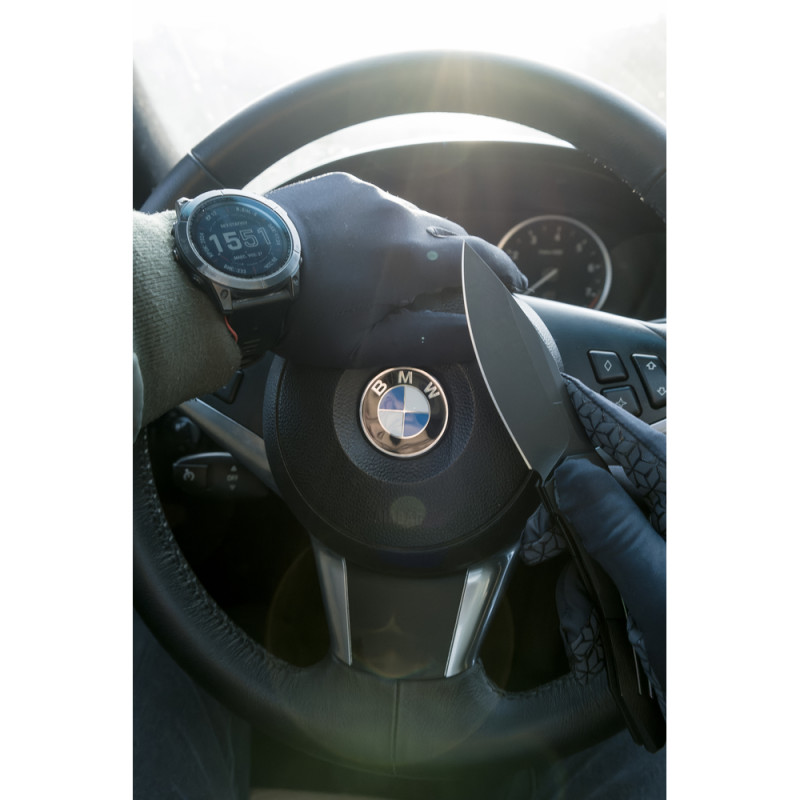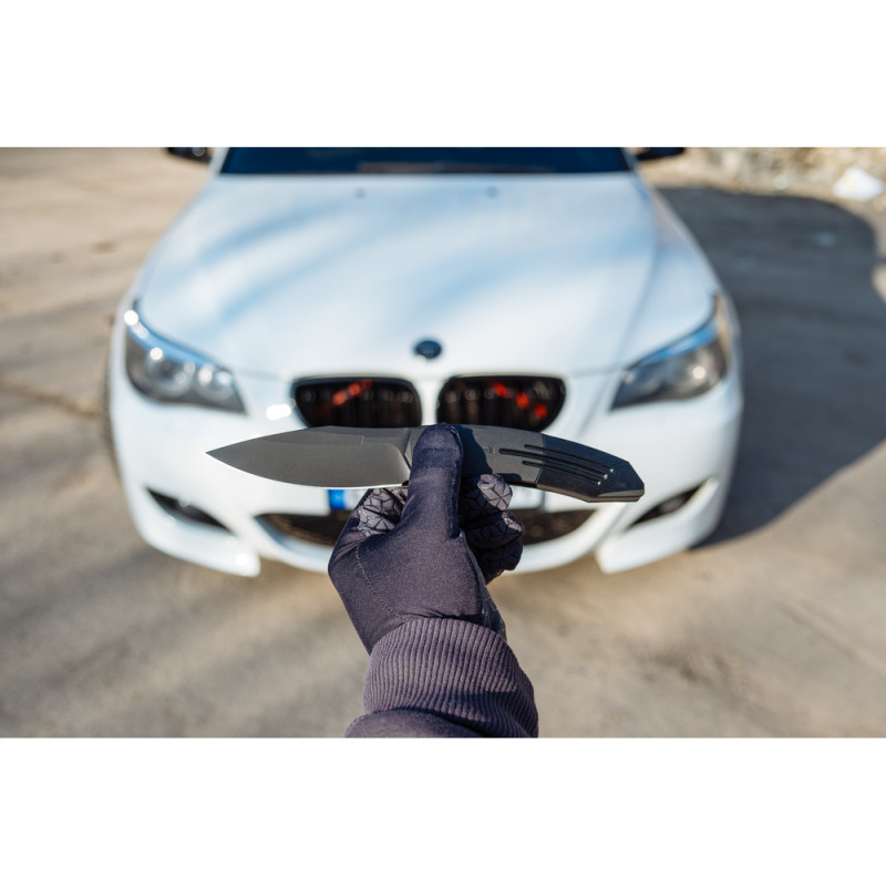 - Сталь Böhler M390 у клинку. Преміальна порошкова сталь випускається австрійською компанією Böhler-Uddeholm. Збалансований хімічний склад з підвищеним вмістом хрому надає металу еталонної міцності та стійкості до корозії навіть у разі регулярного контакту з агресивними середовищами. Додавання ванадію збільшує жорсткість для тривалішого збереження гостроти леза, що пояснює попит на цю сталь у виготовленні ножів преміумкласу.