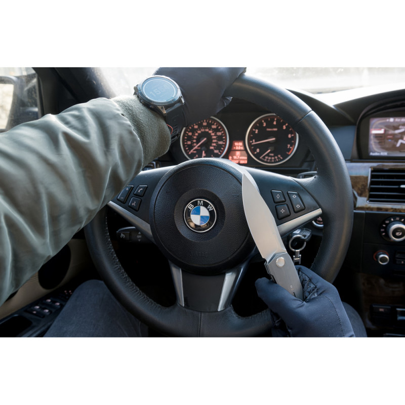- Сталь Böhler M390 у клинку. Преміальна порошкова сталь випускається австрійською компанією Böhler-Uddeholm. Збалансований хімічний склад з підвищеним вмістом хрому надає металу еталонної міцності та стійкості до корозії навіть у разі регулярного контакту з агресивними середовищами. Додавання ванадію збільшує жорсткість для тривалішого збереження гостроти леза, що пояснює попит на цю сталь у виготовленні ножів преміумкласу.