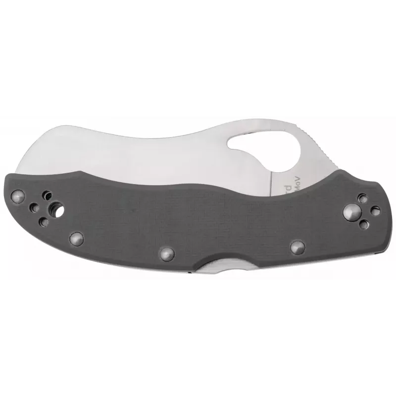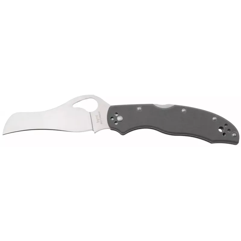 Spyderco Gooney - це практичний, EDC ніж, що входить в бюджетну серію Byrd. Ніж відразу привертає увагу незвичним профілем клинка - щось середнє між Modified Sheepsfoot, Wharnkliffe та Hawkbill. Ніж традиційно приводиться в робоче положення підпальцевим отвором та фіксується замком Back Lock. Для мінімізації ваги лайнери відсутні.
