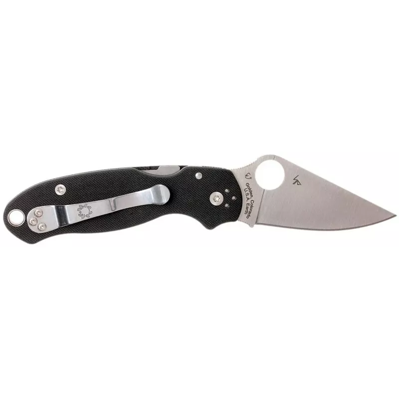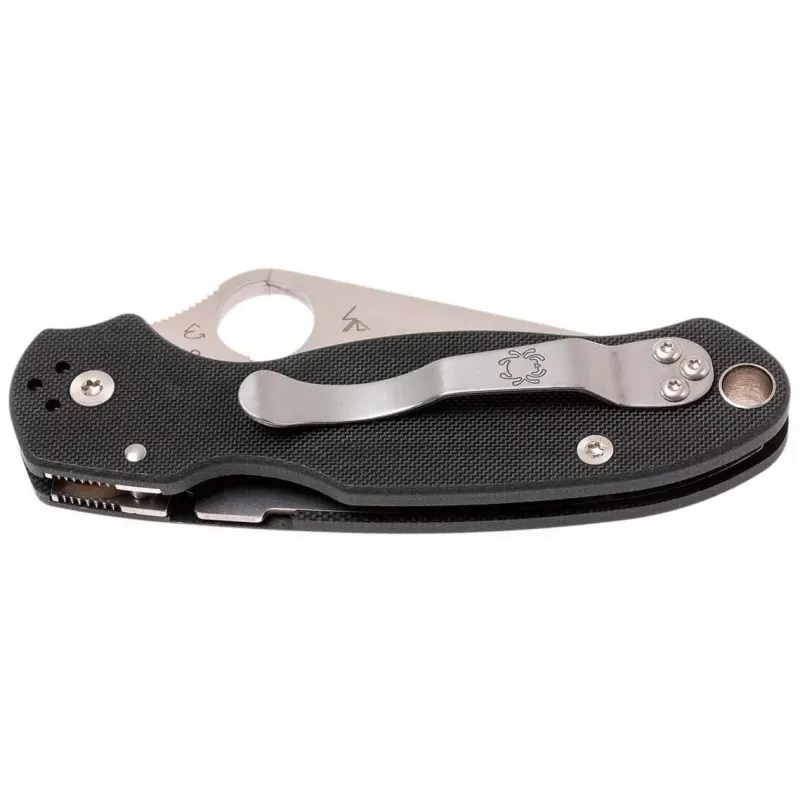 Складаний ніж Spyderco Para 3 має всі перевірені часом характеристики моделі Para Military 2 і є ще більш компактним та універсальним ріжучим інструментом. Невеликий клинок (усього 75 мм) має класичну форму, типову для Spyderco - широкий у основі клинок, що плавно звужується до вістря і трохи нагадує трикутник. Опукле черевце такого клинка чудово справляється як з різом, так і з делікатними роботами. Спуски прямі від обуха. Клинок приводиться в робоче положення за допомогою підпальцевого отвору.