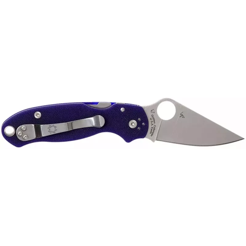 Складаний ніж Spyderco Para 3 має всі перевірені часом характеристики моделі Para Military 2 і є ще більш компактним та універсальним ріжучим інструментом. Невеликий клинок (усього 75 мм) має класичну форму, типову для Spyderco - широкий у основі клинок, що плавно звужується до вістря і трохи нагадує трикутник. Опукле черевце такого клинка чудово справляється як з різом, так і з делікатними роботами. Спуски прямі від обуха. Клинок приводиться в робоче положення за допомогою підпальцевого отвору.