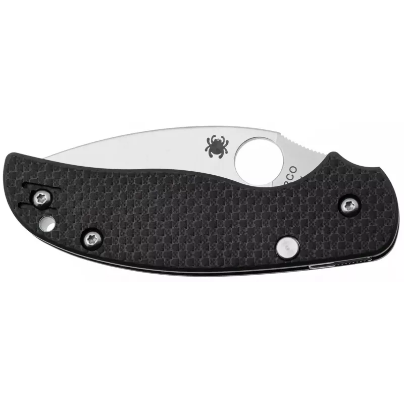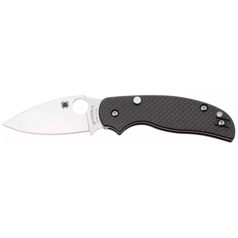 Клинок виготовлений з преміальної сталі CPM S30V, має фірмовий підпальцевий отвір та фіксується замком Button Lock. Насічки надають додатковий упор під час силових робіт. Ергономічне руків’я отримало накладки з вуглецевого волокна, двосторонню кліпсу та отвір під темляк чи стильний ремінець.