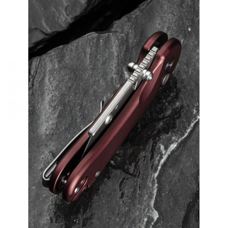 Модель укомплектована замком button lock та керамічними підшипниками в осьовому вузлі. Клинок миттєво виймається з руківʼя при натисканні пружної кнопки та помаху кисті. Ніж можна відкрити й іншими способами: за допомогою шпеника або плавця фліпера.