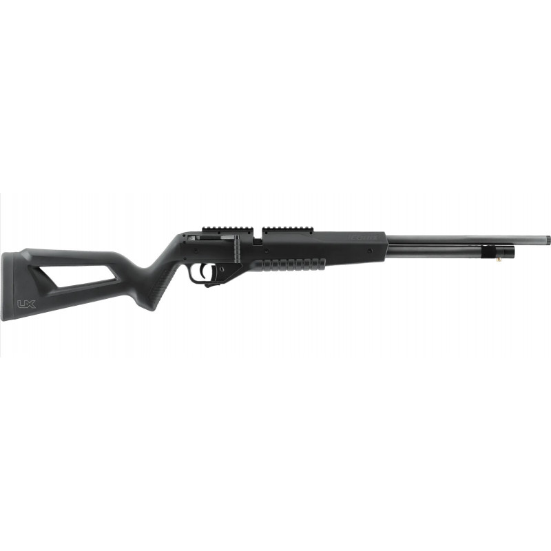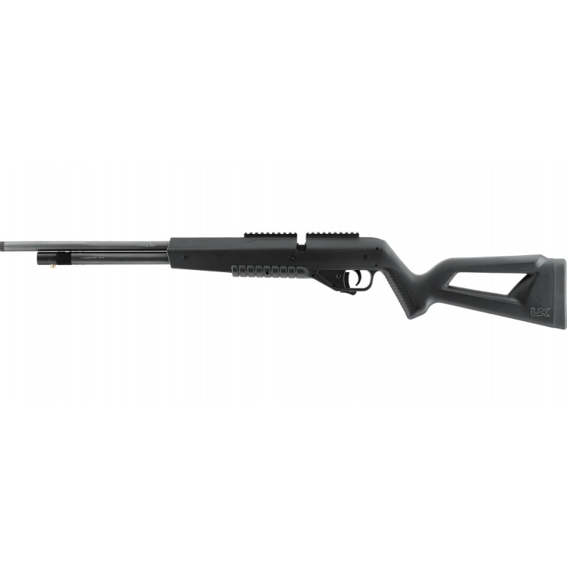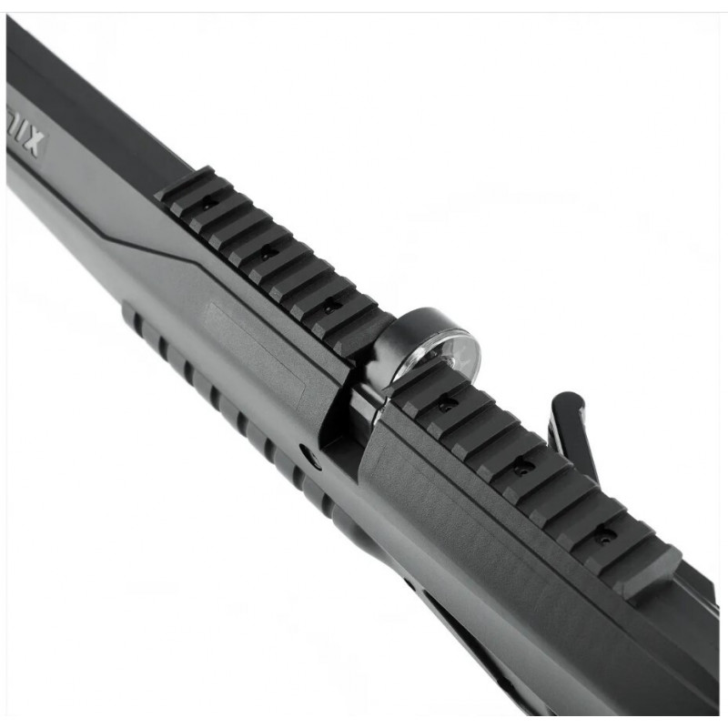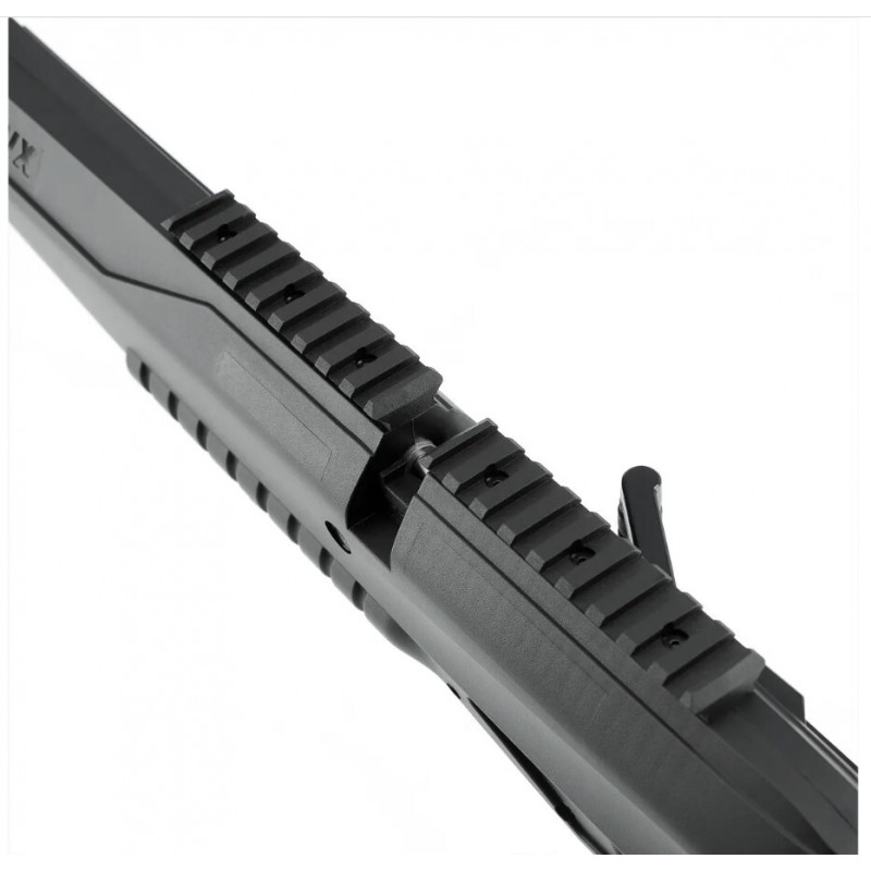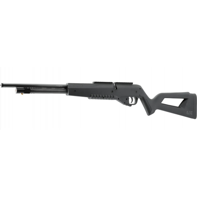UX Iconix – это прямоточная пневматическая винтовка с предварительной накачкой воздуха (PCP) от всемирно известного немецкого бренда Umarex. Система PCP отличается стабильной производительностью, превосходной точностью и большим количеством выстрелов на одну заправку баллона. UX Iconix имеет нарезной ствол длиной 510 мм. Резервуар объемом 100 кубических сантиметров. Рабочее давление составляет 207 бар / 3000 psi. Роторный магазин и эргономичный рычаг взведения затвора позволяют быстро отстреливать 10 пуль калибра 4,5 мм. В комплект также входит лоток для одного выстрела, который позволяет подавать каждую пульку отдельно. Ствол имеет дульную резьбу 1/2"-20 UNF. Эргономичная полимерная ложа снижает вес винтовки до 2200 г. Пистолетная рукоятка и цевье имеют текстурированную поверхность, а для установки оптических прицелов предусмотрена планка Пикатинни.