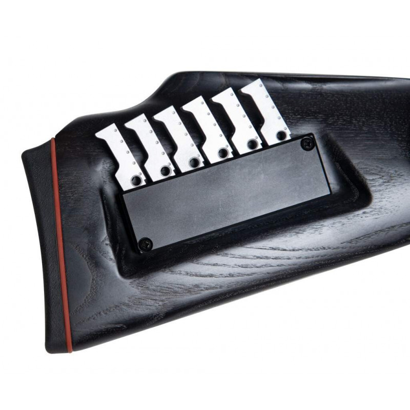 Спусковая скоба теперь деревянная и вырезана в прикладе. Предохранитель типа флажок перенесен на корпус винтовки под левую руку.