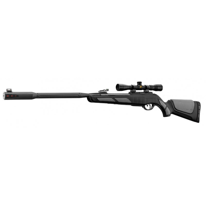 Пневматика с глушителем Whisper Fusion от компании Gamo, это система подавления шума, основана на двухкамерной конструкции глушителя. Первая камера служит для расширения и замедления газов, выходящих из ствола. Вторая камера содержит специальные звукопоглощающие материалы, которые поглощают оставшуюся энергию звуковых волн. Оснащена газовой пружиной «IGT System» (Inert Gas Technology), которая уменьшает вибрацию и отдачу, обеспечивая плавный и стабильный выстрел. Ложа винтовки изготовлена из ударопрочного полимерного материала последнего поколения. Она также оснащена мягким затыльником системы SWA (SHOCK WAVE ABSORBER) – эксклюзивный амортизатор отдачи GAMO, который снижает ощущение отдачи на 74%. Это достигается благодаря трёхкомпонентной конструкции затыльника. Также в комплект входит как механицеские прицельные приспособления - целик и мушка с оптоволоконной нитью, так и оптический прицел 4х32 WR.