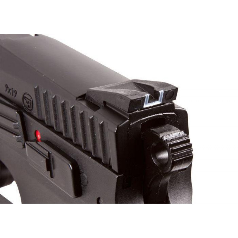 Зовнішній дизайн цього пістолета повністю запозичений у чеського пістолета CZ-75, а саме – у його модифікації CZ 75 P-07 Duty. Ця тактична варіація знаменитого пістолета мала змінений за формою затвор-кожух, виготовлений з полімеру. У випадку з пневматичної версією ASG кожух все ж виготовлений з металу. Більш того, конструкція пістолета дозволяє здійснювати пересмикування затвора-кожуха, імітуючи використання реального пістолета (є навіть функція затворної затримки). У стовбурі є нарізи для установки саунд-модератора. Інтегрований під стовбур профіль Weaver дозволяє при необхідності встановити ліхтар або целеуказатель.