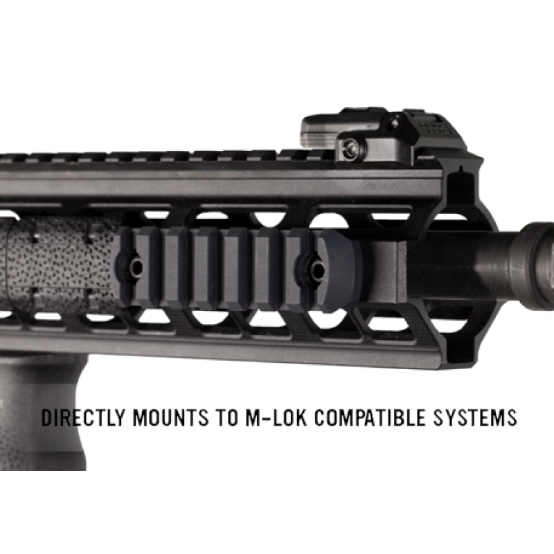 Обтічна форма і відсутність гострих кутів перешкоджають зачепам планки за спорядження або одяг. Планка комплектується кріпленнями для установки на цівки системи M-LOK. Загальна довжина - 8,4 см, відстань між отворами монтажу - 4 см.
