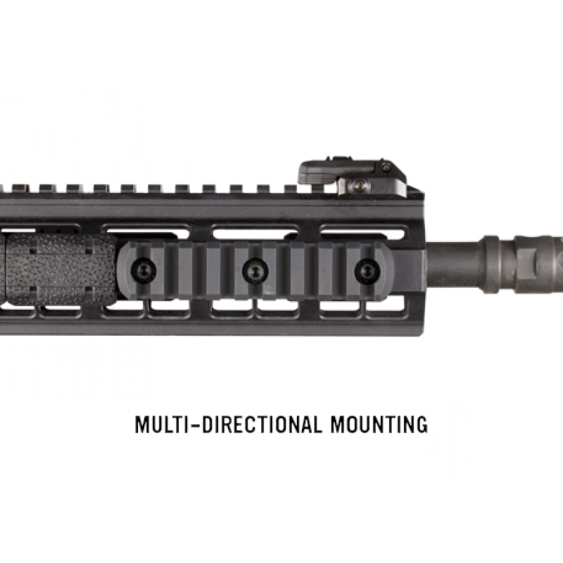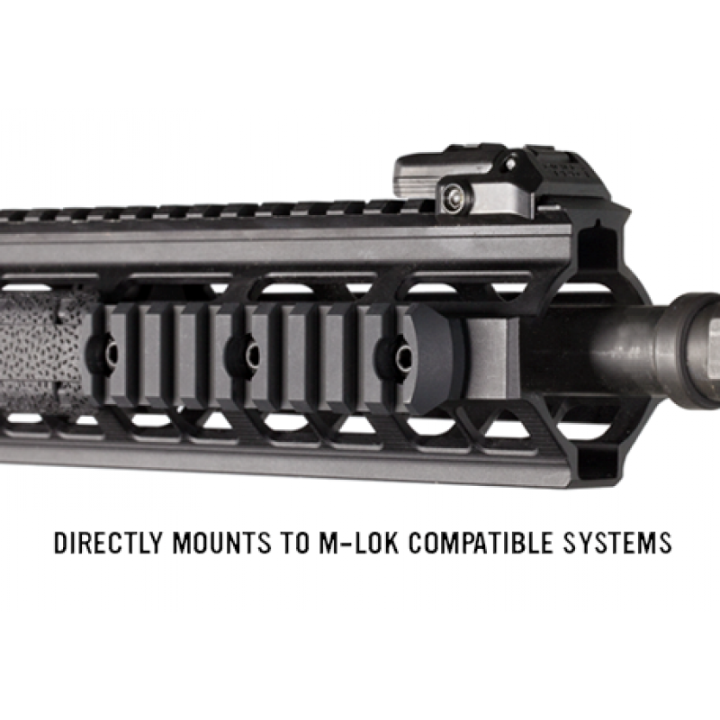 Обтічна форма і відсутність гострих кутів перешкоджають зачепам планки за спорядження або одяг. Планка комплектується кріпленнями для установки на цівки системи M-LOK. Загальна довжина - 10,4 см, відстань між отворами монтажу - 6 см