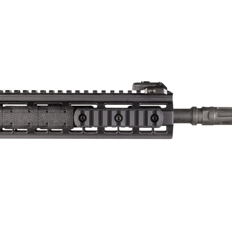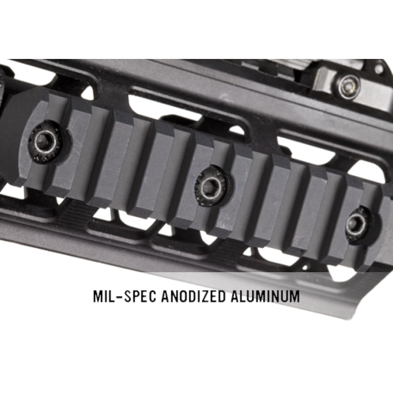 M-LOK ™ ALUMINUM RAIL, 9 SLOTS - напрямна стандарту 1913 Picatinny. Виготовлена з алюмінію, здатна витримувати серйозні ударні навантаження. Призначена для установки різних аксесуарів (рукояті перенесення вогню, кріплення для ліхтарів і лазерних целеуказателей і т.д.). Підходить для використання з цевьямі системи M-LOK.