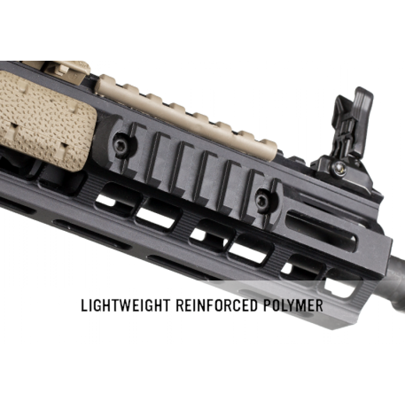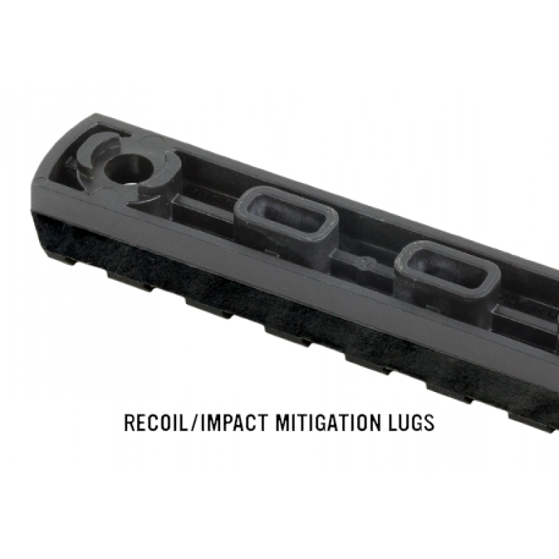 M-LOK ™ POLYMER RAIL, 7 SLOTS - напрямна стандарту 1913 Picatinny. Виготовлена з міцного полімеру, здатна витримувати серйозні ударні навантаження. Призначена для установки різних аксесуарів (рукояті перенесення вогню, кріплення для ліхтарів і лазерних целеуказателей і т.д.). Підходить для використання з цевьямі системи M-LOK.