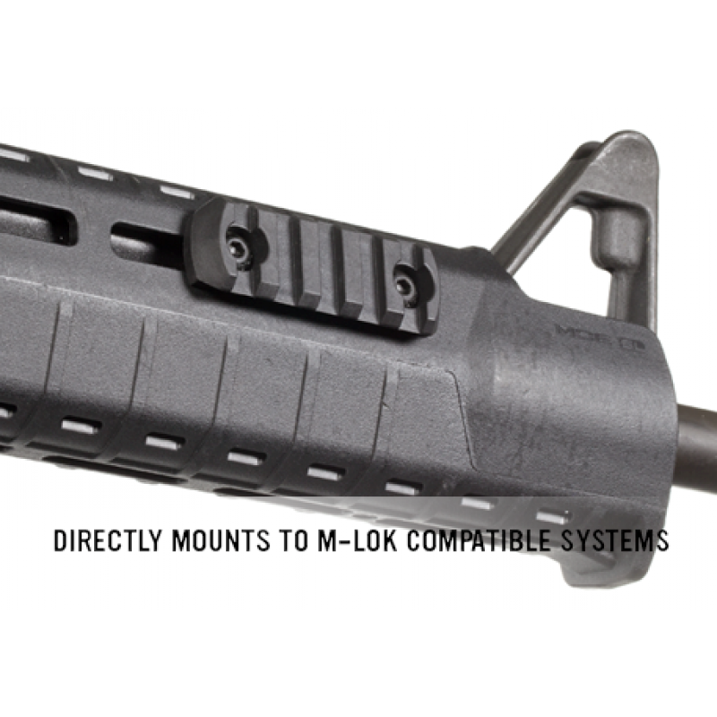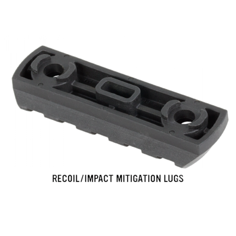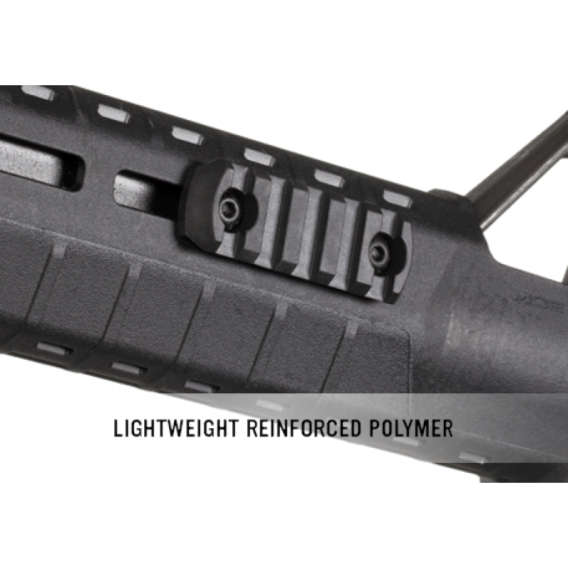 M-LOK ™ POLYMER RAIL, 5 SLOTS - напрямна стандарту 1913 Picatinny. Виготовлена з міцного полімеру, здатна витримувати серйозні ударні навантаження. Призначена для установки різних аксесуарів (рукояті перенесення вогню, кріплення для ліхтарів і лазерних целеуказателей і т.д.). Підходить для використання з цевьямі системи M-LOK.