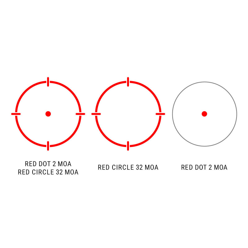 - Прицільна сітка: точка 2 МОА / коло 32 MOA / точка 2 МОА у колі 32 MOA