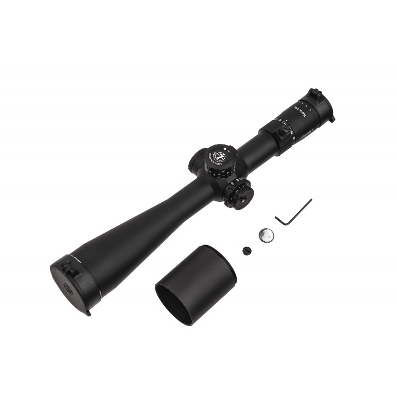 Ціна кліка барабанів становить 1/10 MIL. Прицільна марка виконана в MIL, тому у вас не буде складнощів під час експлуатації. Окуляр має діоптричне налаштування і має систему Fast-Focus для швидкого прицілювання. Бічна відбудова паралакса для максимального комфорту і точності прицілювання. Лінзи мають покриття Twilight Max HD, яке забезпечує чітке і чисте зображення навіть в умовах обмеженої освітленості.