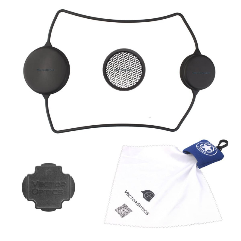 Поставляється зі знімним важелем зміни кратності, кільцями для установки на планку Пікатіні, стільникового блендою.