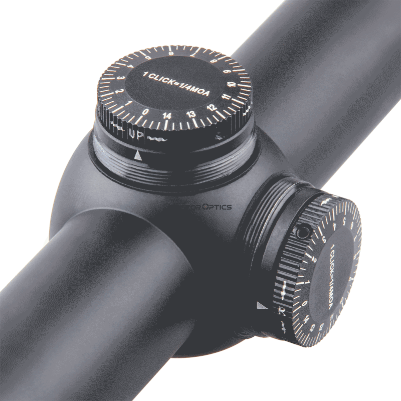 Оптичний приціл Matiz 4-12x40 з діапазоном поправок по горизонталі й вертикалі 60 МОА, а друга фокальна площина зберігає той же розмір прицільної сітки при збільшенні.