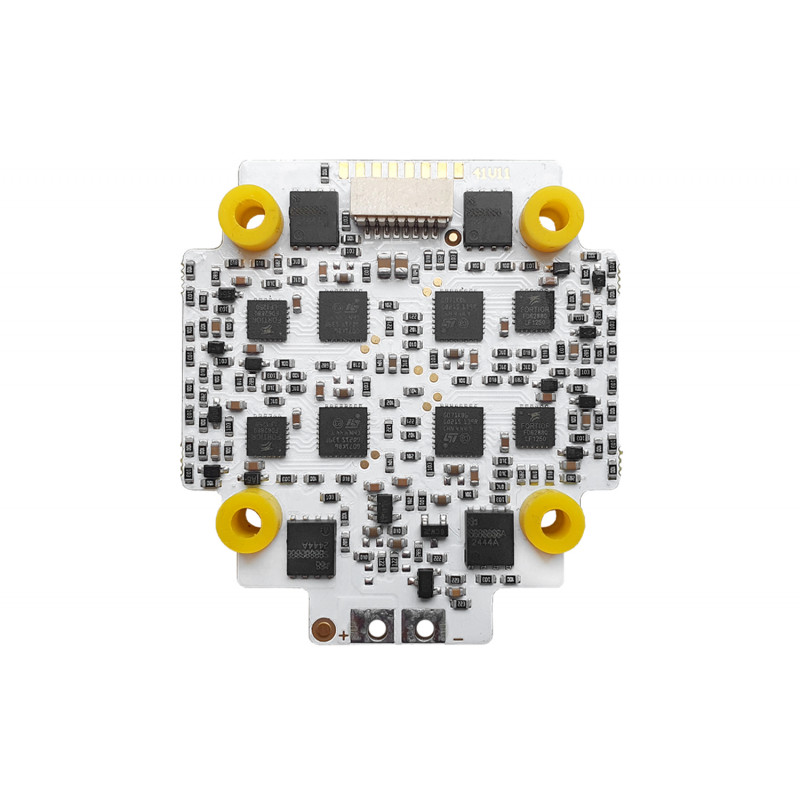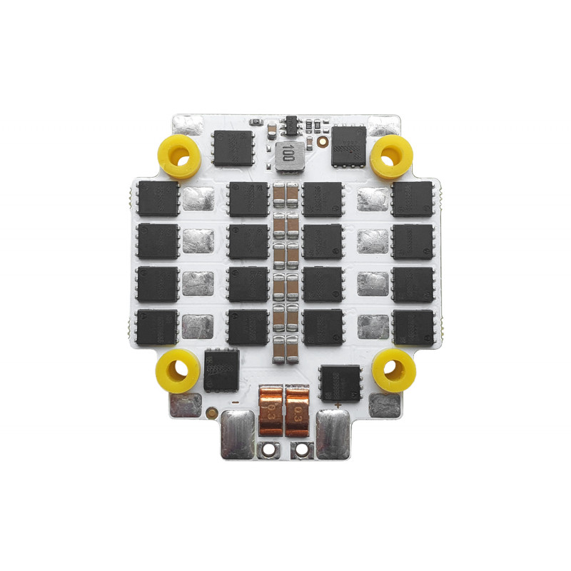 У якості силової частини стеку використовується регулятор 4-в-1 на 32-ух бітних контроллерах STM32G071KBU6N, з силовими ключами JMSL030SAG. Регулятор у під дією повітряного потіку може витримувати постійний струм у 65А на канал (піковий струм 80А до 10сек). Діапазон струму, що може бути виміряно для відображення через телеметрію - від 0 до 275А.