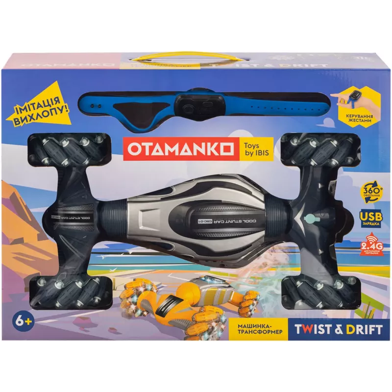 А тепер увага, моя улюблена частина! Керувати цією машиною можна не тільки звичайним пультом-джойстиком, але й за допомогою спеціального сенсорного браслета на руці! Це неймовірно захопливо, ніби ви самі керуєте всюдиходом лише рухом руки – справжня магія! А ще машинка може виконувати обертання на 360° і трансформуватися прямо під час руху, даруючи ще більше емоцій. І не забудьте про ефектний імітаційний вихлоп – машинка пускає пар, створюючи враження справжнього гоночного монстра!