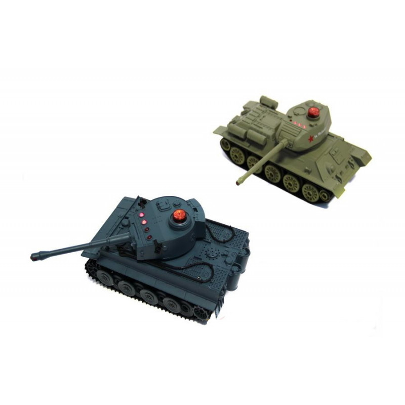 Комплект для інфрачервоного танкового бою на радіокеруванні з 2 міні-моделей найвідоміших танків другої світової війни. У наборі йдуть знаходяться танк Т-34 (СРСР), танк Tiger (Німеччина), 2 пульта і USB зарядний пристрій для одночасної зарядки двох танків.