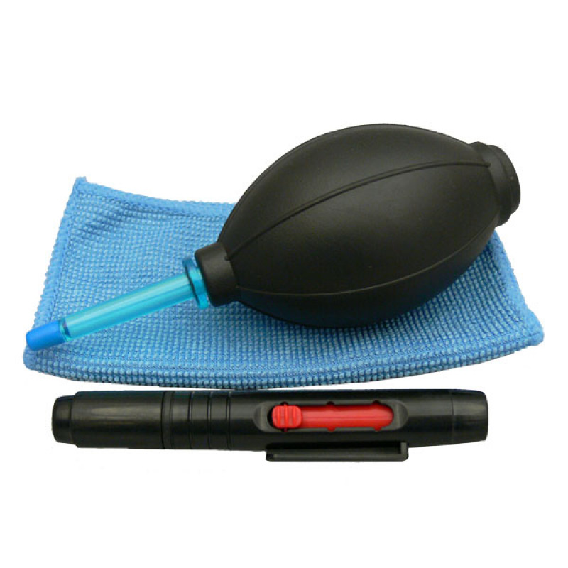 До комплекту входить груша для здування пилу в важкодоступних місцях, а також ганчірочка з мікрофібри для протирання оптики.