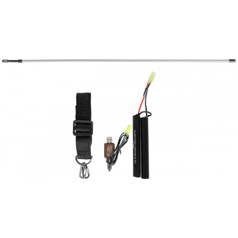 Гвинтівка оснащена регульованою системою Hop-Up, яка дозволяє оптимізувати підкручування BB-куль для підвищення стабільності траєкторії. Початкова швидкість 120 м/с забезпечує збалансоване поєднання точності та безпеки для гри в більшості клубів. Модель постачається разом з акумулятором і зарядним пристроєм, тому готова до роботи «з коробки».
