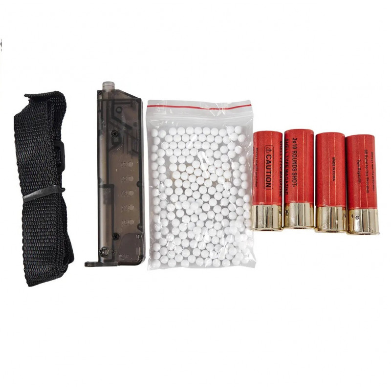 Принцип роботи цієї моделі заснований на стисканні пружинного механізму. Перезаряджання відповідає бойовому аналогу і відбувається в ручному режимі: після кожного пострілу необхідно зробити зведення шляхом пересмикування затвора, який одночасно є цівкою. Реалістичності також додають магазини, що постачаються разом із страйкбольною рушницею, виконані у вигляді патронів до дробовика. Заряд моделі складає 30 кульок ВР калібру 6 мм.