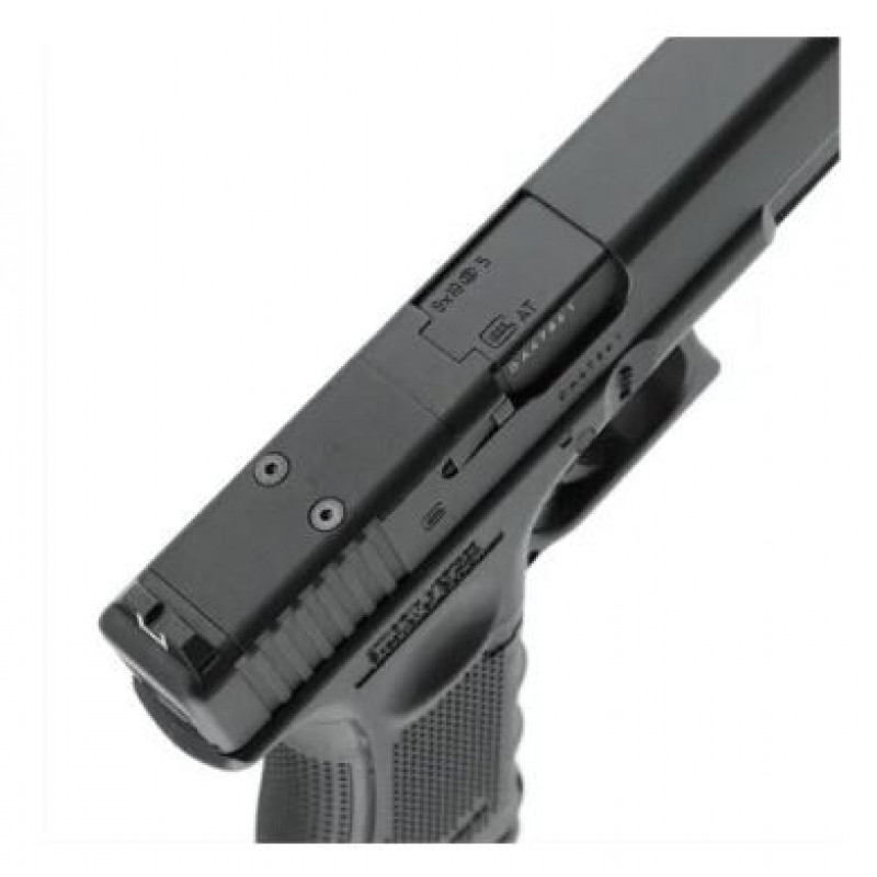 Glock 19 от Umarex - это страйкбольная версия легендарного австрийского пистолета Glock 19 Gen 4 (4 поколение). Оригинальная модель является уменьшенной версией Glock 17, который предназначен в первую очередь для служебного пользования. Благодаря компактным размерам, Glock 19 идеально подходит для скрытого ношения. Страйкбольная реплика была изготовлена с максимальным вниманием к мельчайшим деталям, что делает ее чрезвычайно реалистичной. Корпус данной модели изготовлен из прочного ABS-пластика, а кожух-затвор, ствол и магазин - из металла. Прицельные приспособления представлены в виде механических целика и мушки. Особеностью Glock 19 Gen4 от Umarex является то, что он оснащен интерфейсом MOS (модульная оптическая система) - специальной съемной планкой в верхней части кожуха-затвора, благодаря которой обеспечивается возможность установки коллиматорных прицелов Docter, Trijicon, C-More и Leupold со стандартом MOS1. Страйкбольный пистолет, традиционно для оригинального Glock 19 4 поколения, перенял эргономичные свойства рукоятки, в частности это касается текстурированной поверхности накладок. Магазин рассчитан на 12 шариков калибра 6 мм. Страйкбольная модель лицензирована компанией Glock, а значит на ее корпусе нанесена аутентичная маркировка.